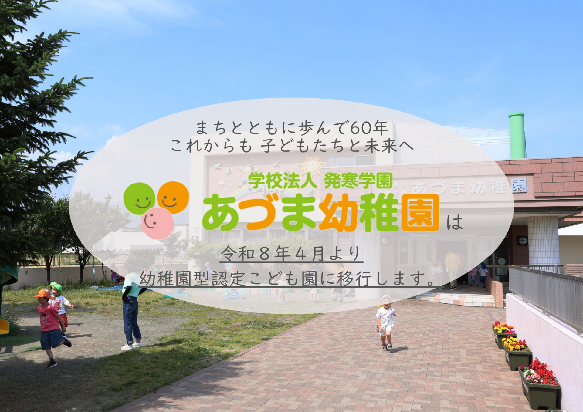 2021/05/272025/10/31 本物の自然や生き物と触れる中で五感を目いっぱい働かせて遊びます ご入園(一般枠)をお考えの皆様へ 入園受付のお申込みが開始されました。ご入園に関するお問い合わせは、お電話にてお願いしたします。 令和8年度 入園受付 10月31日です あづま幼稚園は令和8年度より幼稚園型認定こども園になります 新着情報令和8年度 未就園児親子ルーム お申し込み2025年10月31日 保護中: 10月のお便り2025年10月30日 年少 秋を探しに🍁2025年10月28日 年少 秋を探しに🍁 2025/10/28 年少 秋を探しに🍁 2025/10/28 10月誕生会・3歳のお祝い 2025/10/27 やきいも🍠 2025/10/24 注目 令和8年度あづま幼稚園 入園願書配布10/15~ 10月15日より 園庭開放のご案内 日程などくわしくはこちらをご覧ください🍀 令和8年度未就園児親子ルーム(2歳 プレ)募集について 令和7年度6回目 未就園児親子ルームのお知らせ(10月) 2025/10/01 令和7年度5回目 未就園児親子ルームのお知らせ(9月) 2025/09/21 令和7年度4回目 未就園児親子ルームのお知らせ(8月) 2025/08/01 保護中: ばら組 くれよんのくろくんに向けて 2025/10/20 保護中: すずらん組 みんなでおおかみくん✨ 2025/10/17 保護中: ちゅうりっぷ組 動物園ごっこ🐯 2025/10/17 保護中: ゆり組 動物園楽しかったね♪ 2025/10/17 保護中: もも組 お月見うさぎへの贈り物🍡 2025/10/17 お問い合わせフォーム 電話 (011)661-7090 <電話受付時間>9時~17時 (月~金) 本園の特色 学校法人発寒学園 あづま幼稚園〒063-0836北海道札幌市西区発寒16条4丁目3-70