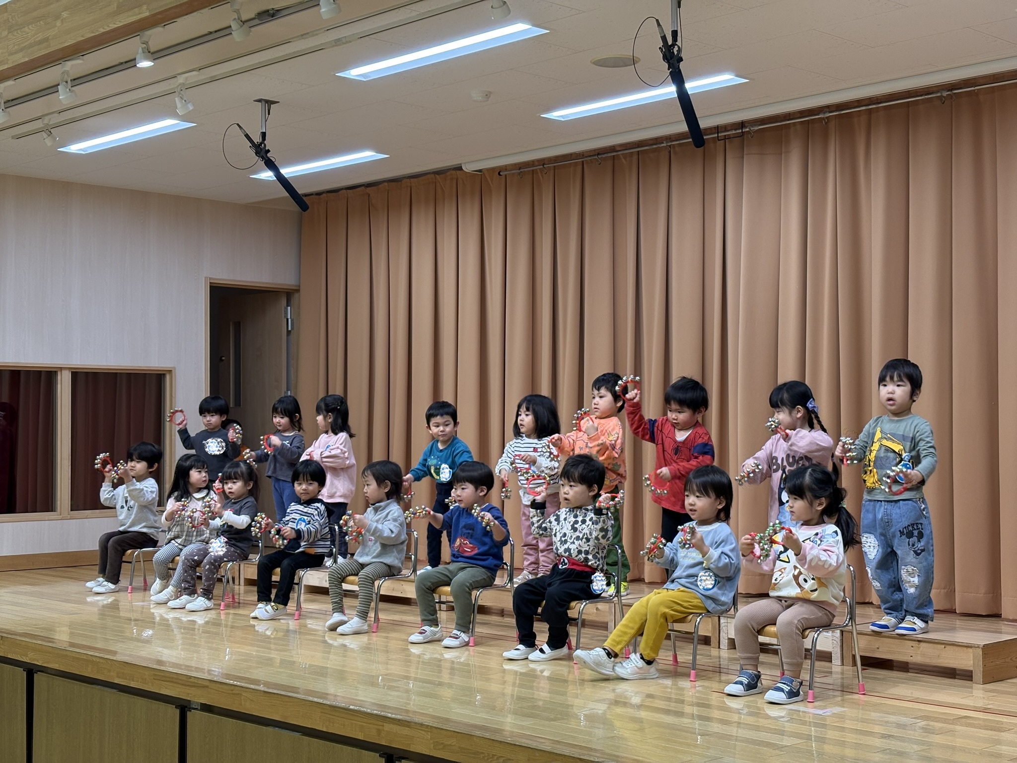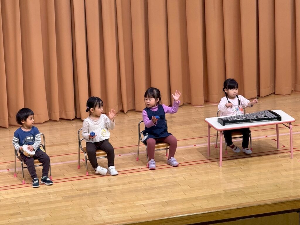 楽器を使ってリズムを楽しむクラスもあれば、ダンスでのびのびと表現するクラスもあり、それぞれのクラスで楽しみながら取り組んできた様子が感じられる、素敵な時間となりました。