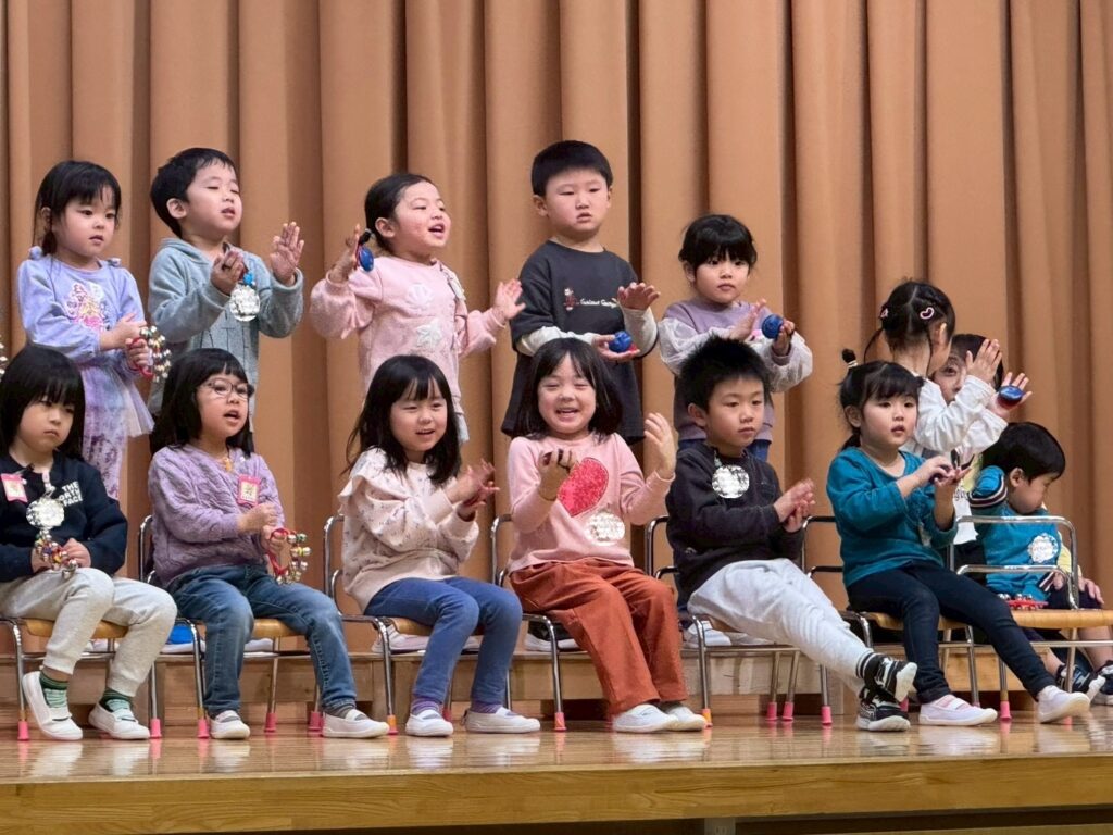 大きい友だちや小さい友だち、そして先生たちからたくさんの拍手をもらい、子どもたちも少し自信がついたようです。