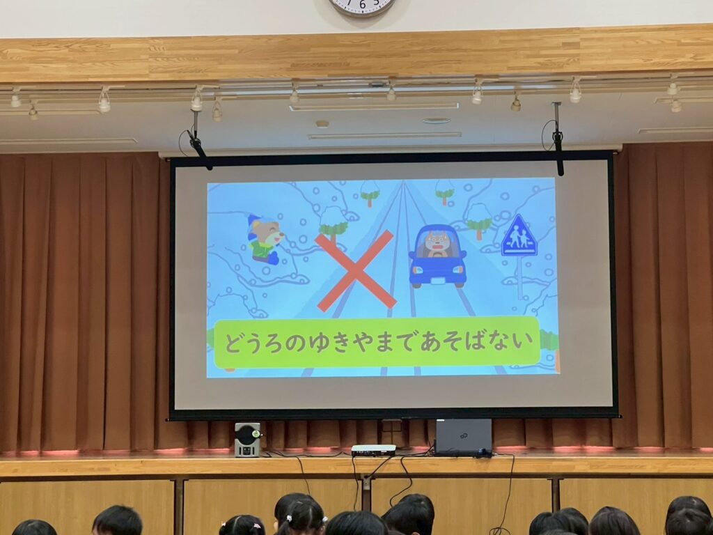 ストーリーを振り返りながら、冬ならではの危険を確認し、指導員さんと3つの約束をしていきます。