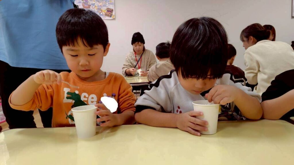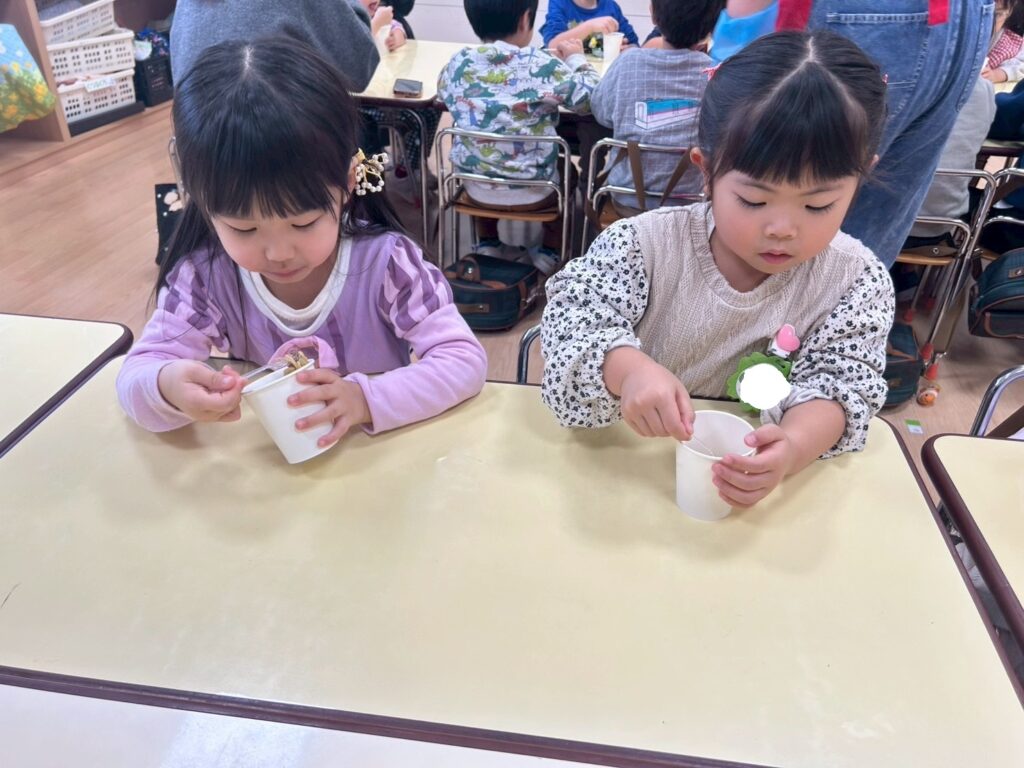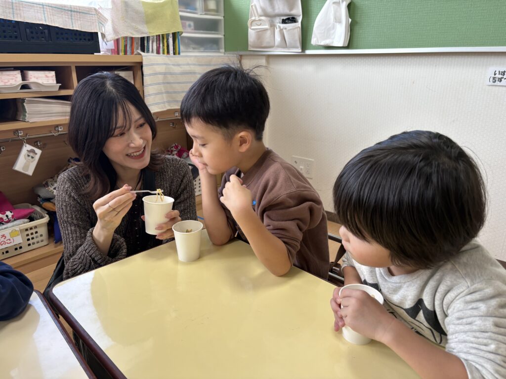 苦手な野菜にもチャレンジしてみたり、「おかわりはないの~?」という声が聞こえてきたりと、食の興味の広がりにも繋がったようで、おいしくて楽しい時間になりました♡