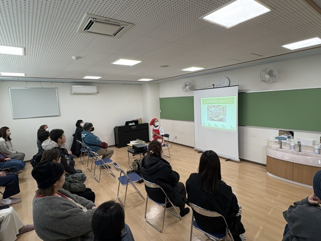 別会場では、参加された保護者の皆様に向けて、栄養士の先生からの講義を聴いていただきました。道民のソールフードの「ジンギスカン」には、栄養がいっぱいあることが分かりました♪