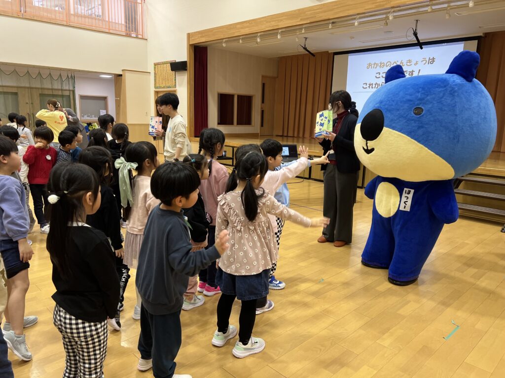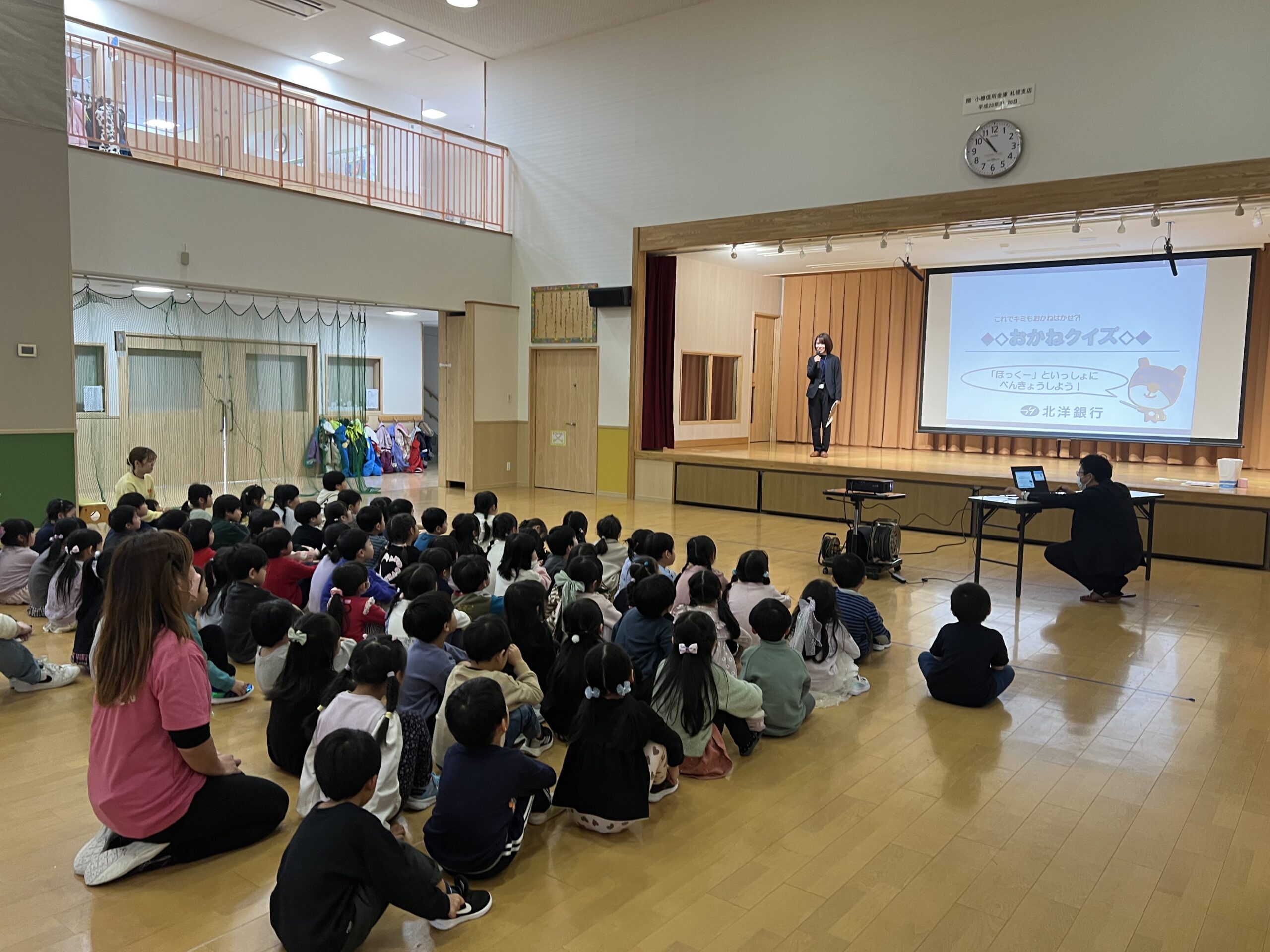 今日は、北洋銀行の皆さんとマスコットキャラクターの「ほっくー」が、お金のことを教えにあづま幼稚園に遊びに来てくれました♪