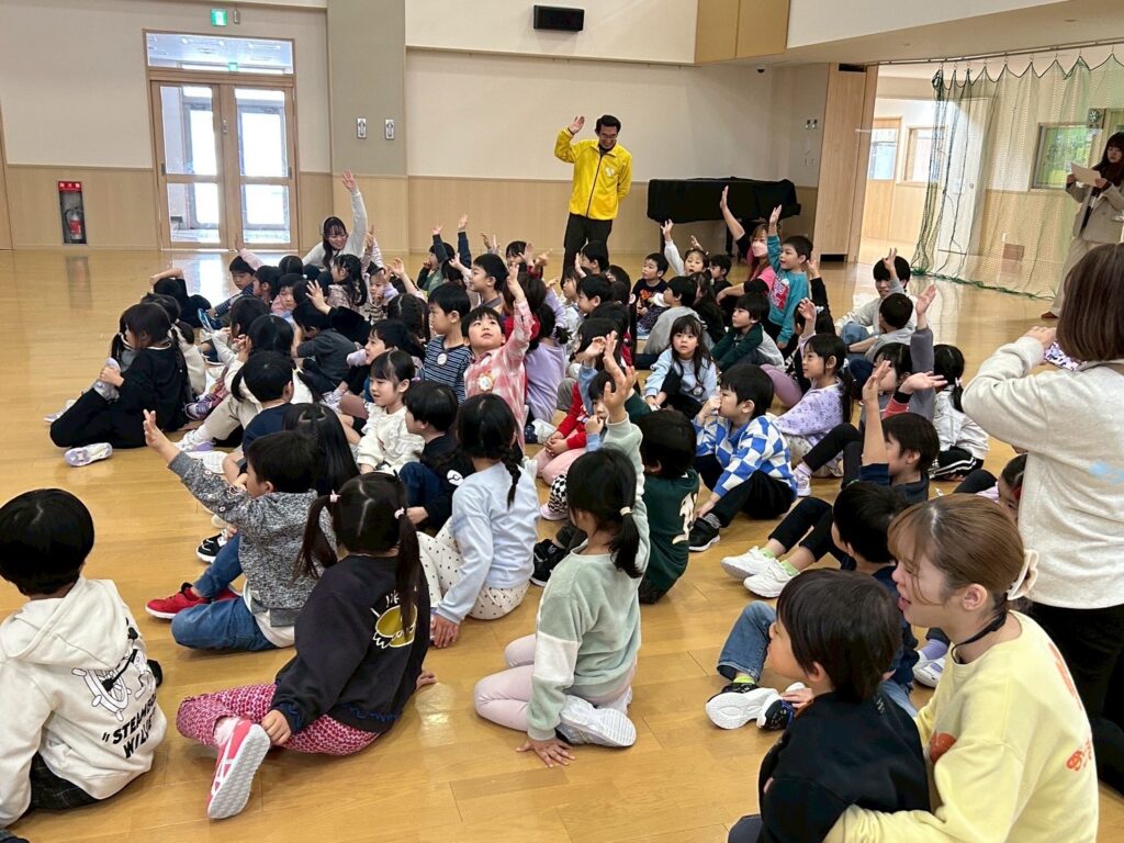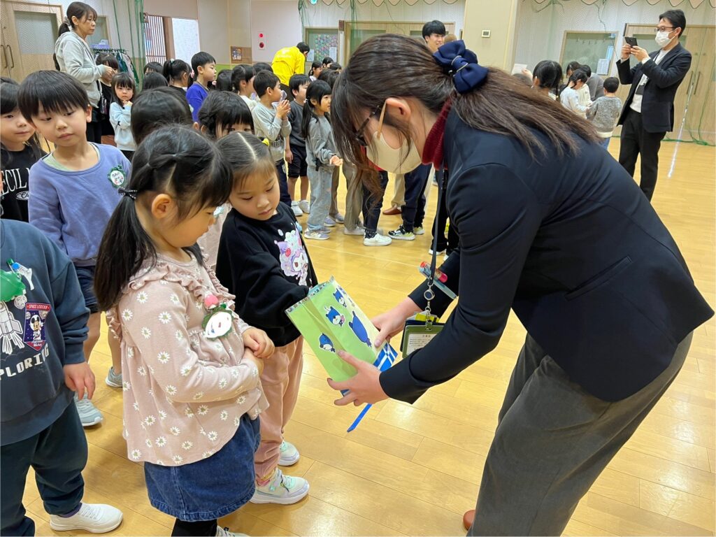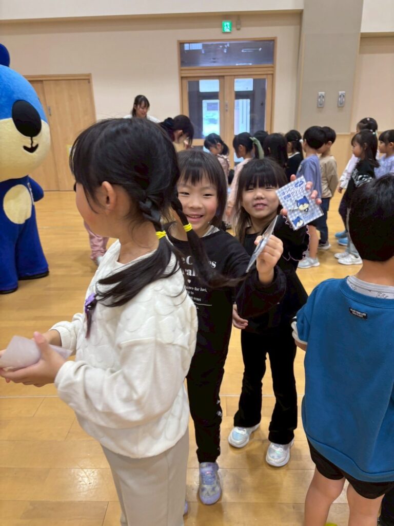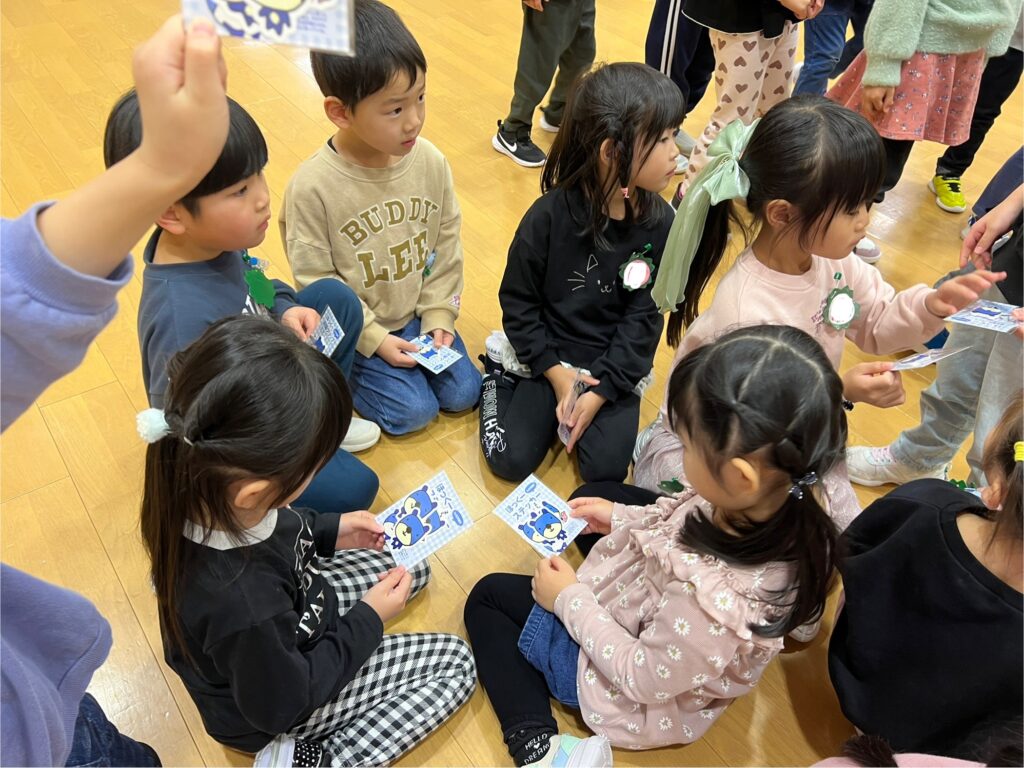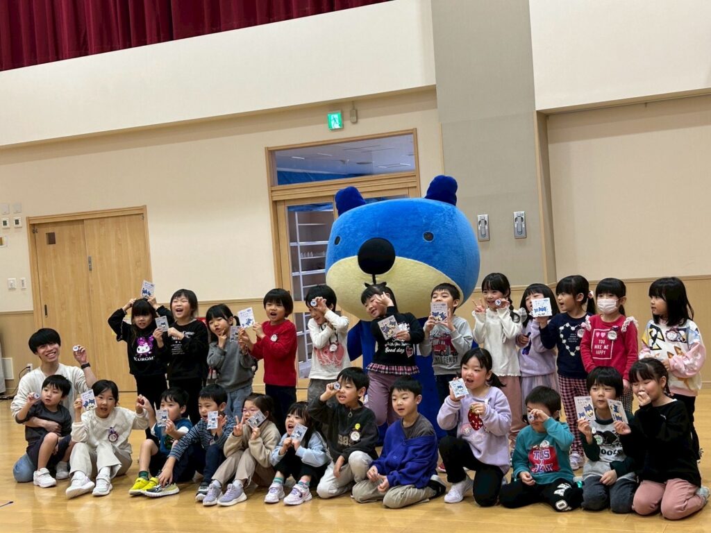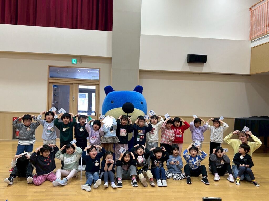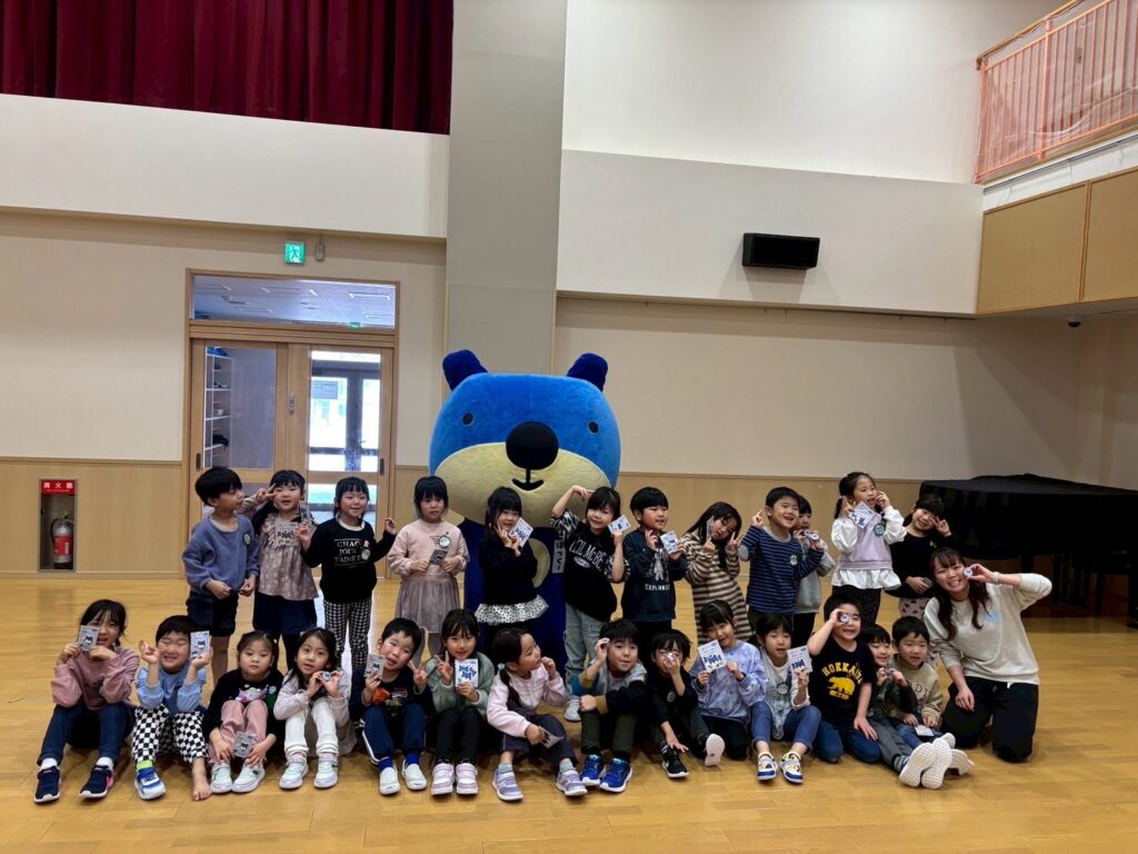 クイズの後は、皆の近くにほっくーが来てくれました!「ほっくー!」と大きな声で呼んだり、ハイタッチを楽しむ年長の皆さんでした!