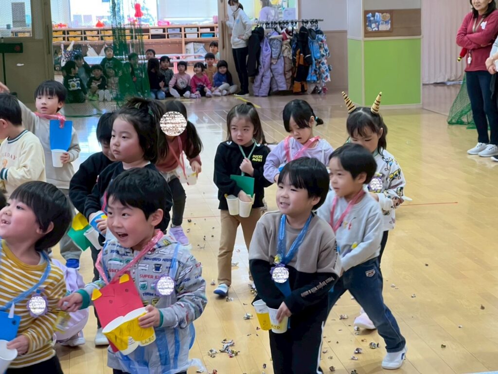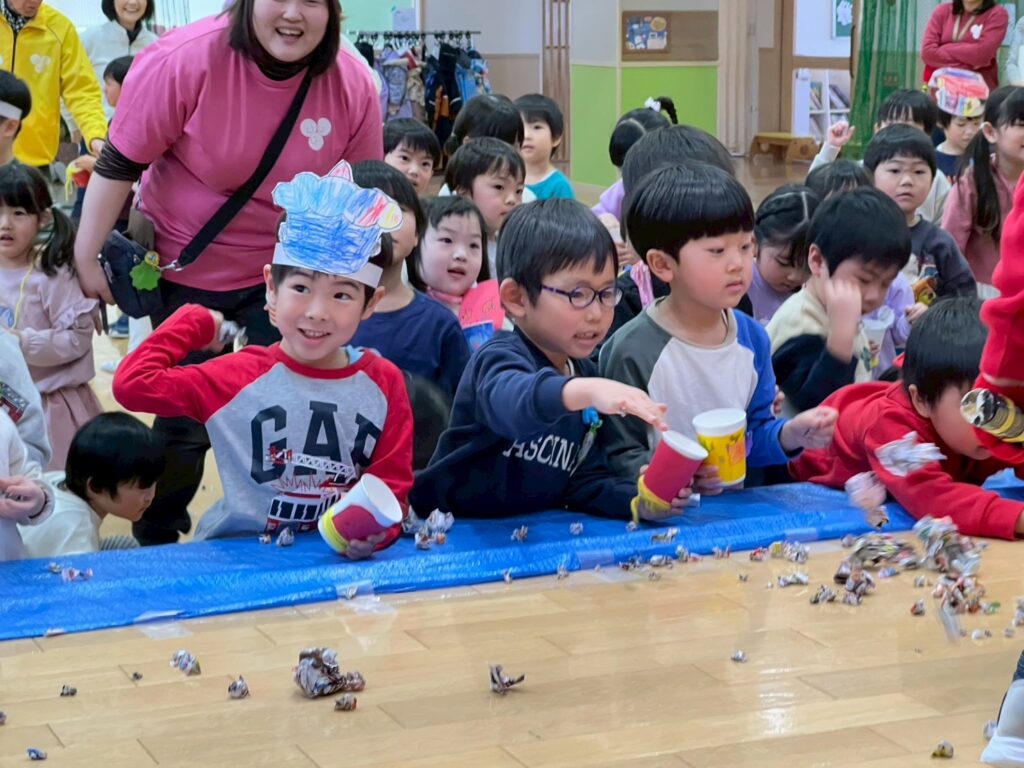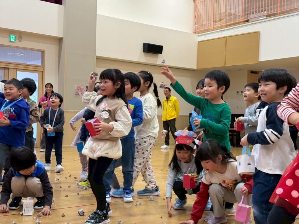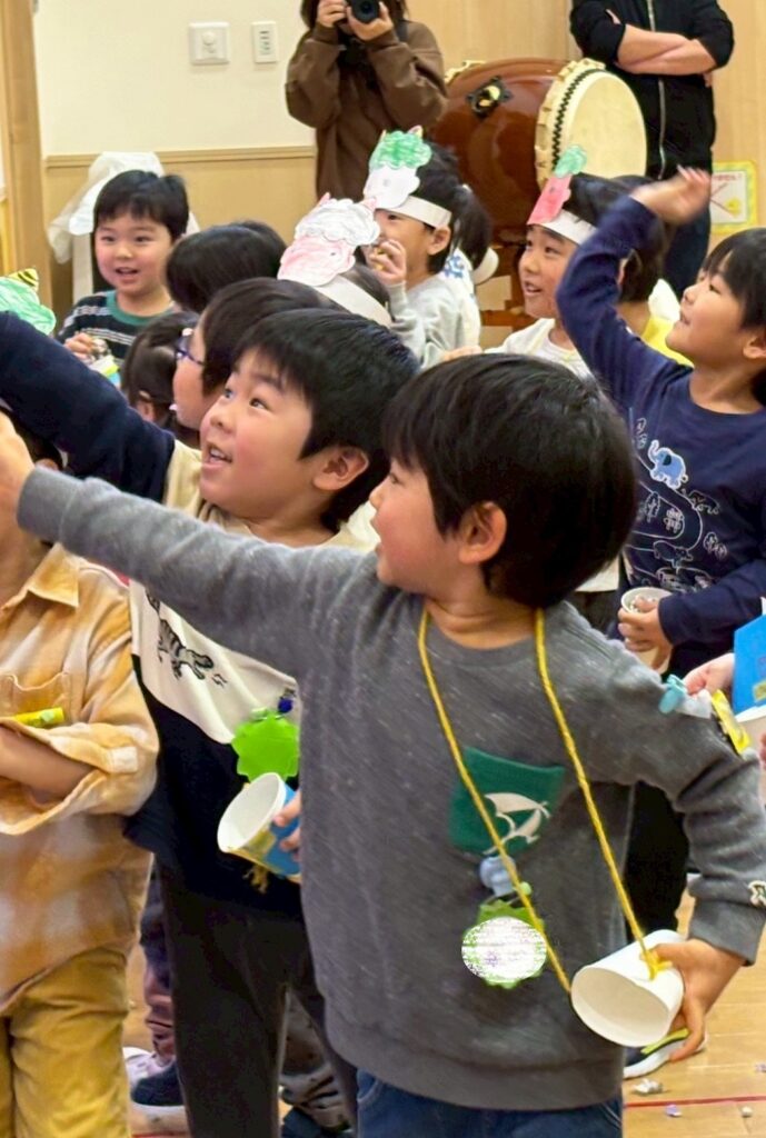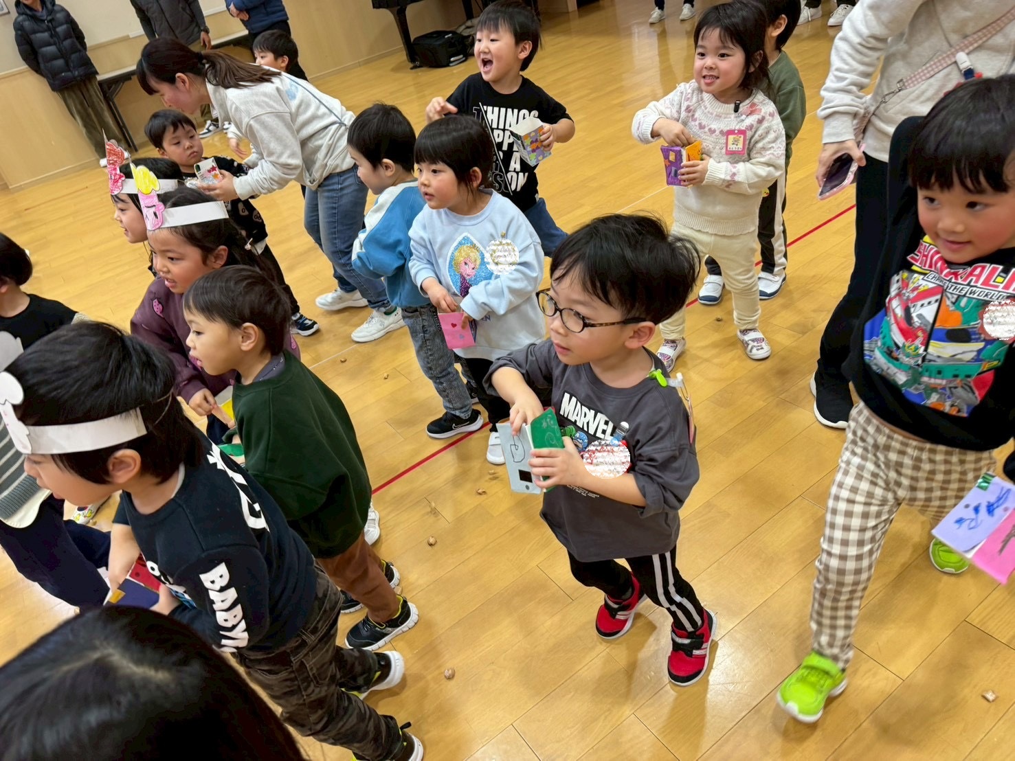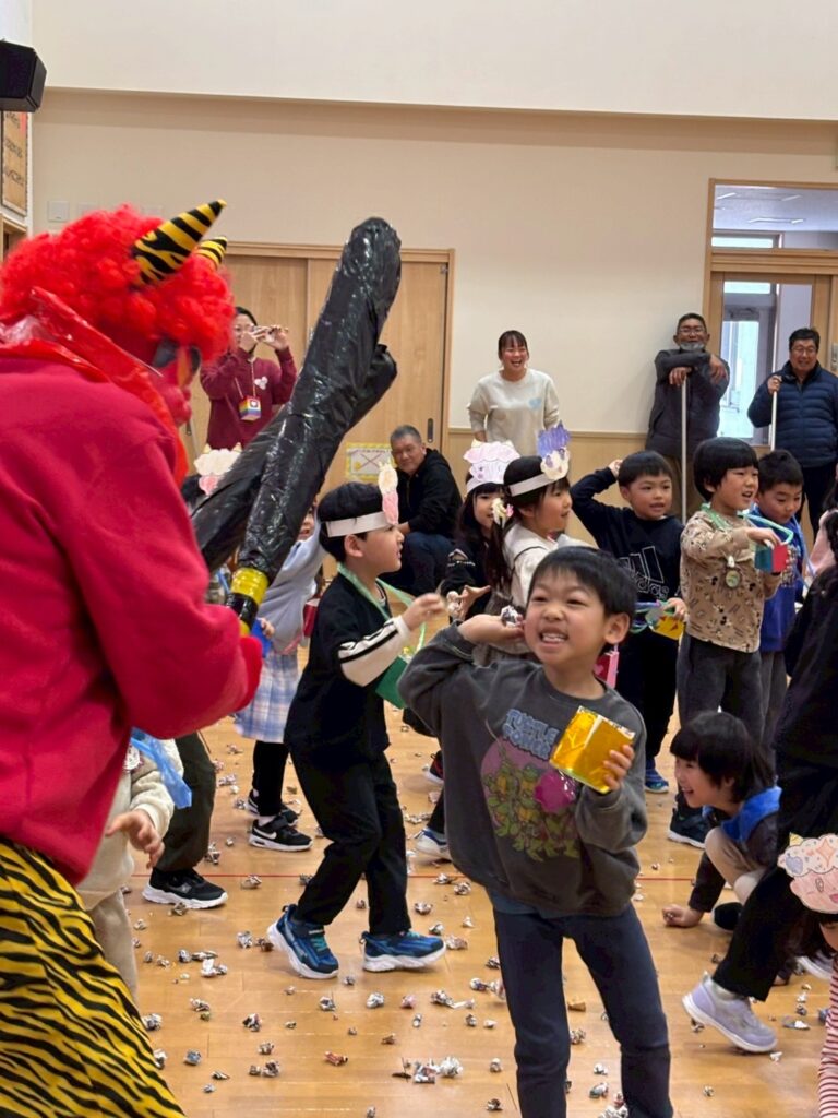 節分の豆まき 2026/02/10 お伝えが遅くなりましたが、春や福を迎え入れようと、節分の豆まきをしました。 ホールに集まって、「鬼はそと!福はうち!」と元気な掛け声で豆を投げていきます。勇敢に前へ進んでいく子もいれば、腰が引けて先生を探している子など、その姿は様々でしたが、季節の行事にふれる良い時間となりました。 幼稚園では、誤飲や誤嚥を防ぐために手作りの豆で行っていますが、北海道では落花生をまく習慣がありますよね♪皆さんのご家庭でも豆まきはされましたか😊 健康で良い1年が過ごせますように♡