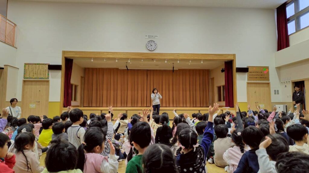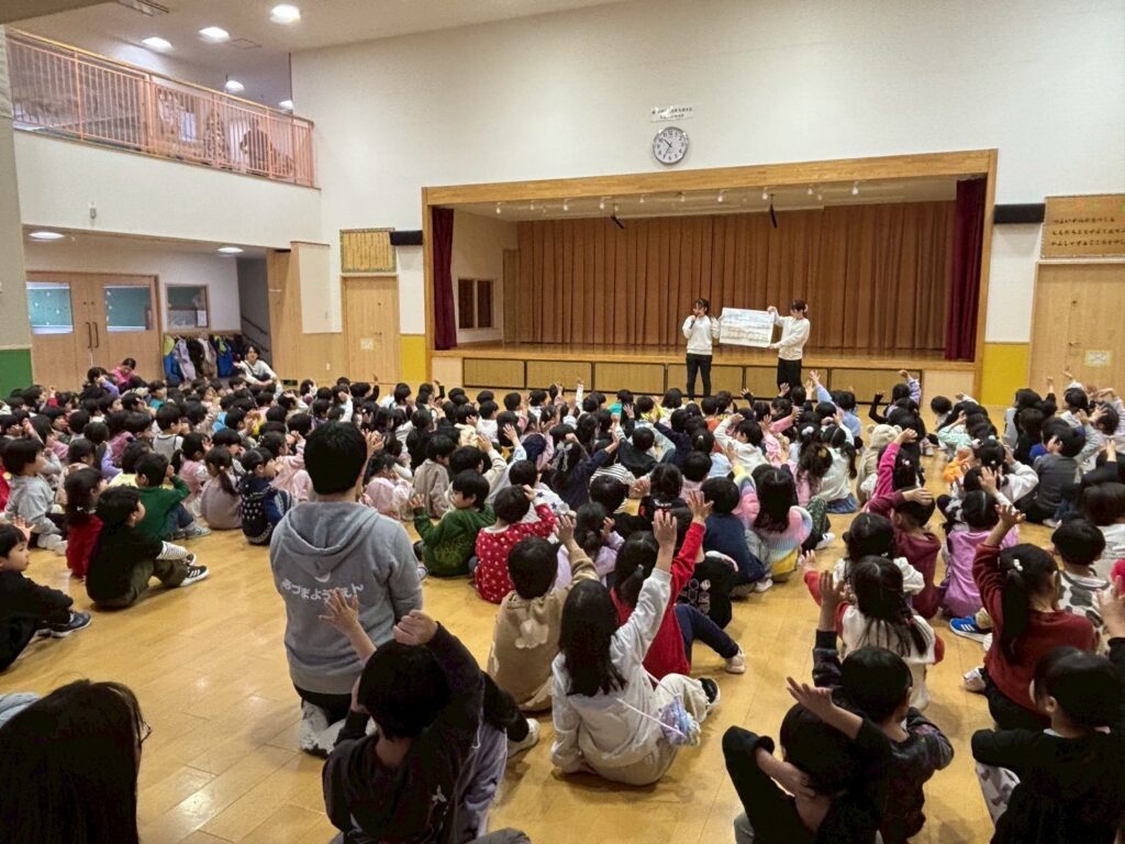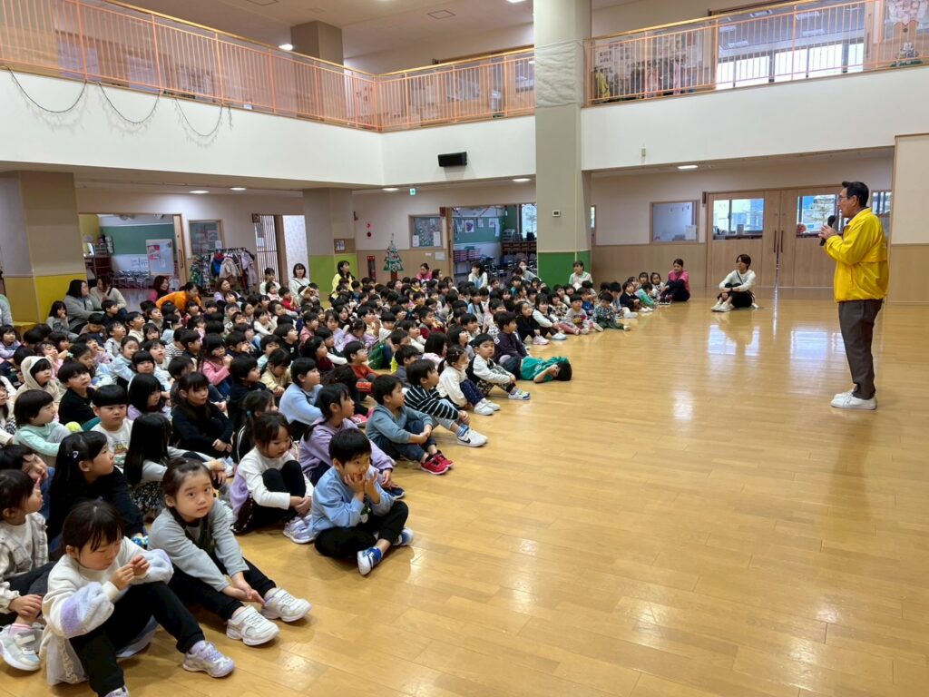 そして、園長先生からは『げんきに あんぜんに にこにこ』と、冬休みを楽しく過ごす合言葉を教えてもらい、冬休みに向けて心の準備をしました。