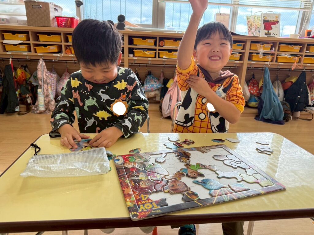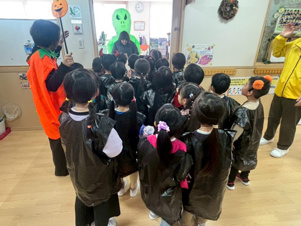 あきこ先生とハロウィンを楽しむ為に、キャンディポットを作ったところから、秋はハロウィンごっこが大流行しました🎃年長の皆さんの遊びはとても刺激的で、真似をする年下の下の子も多く、園内のいたるところで「トリックオアトリート!」の声が響いていました♪